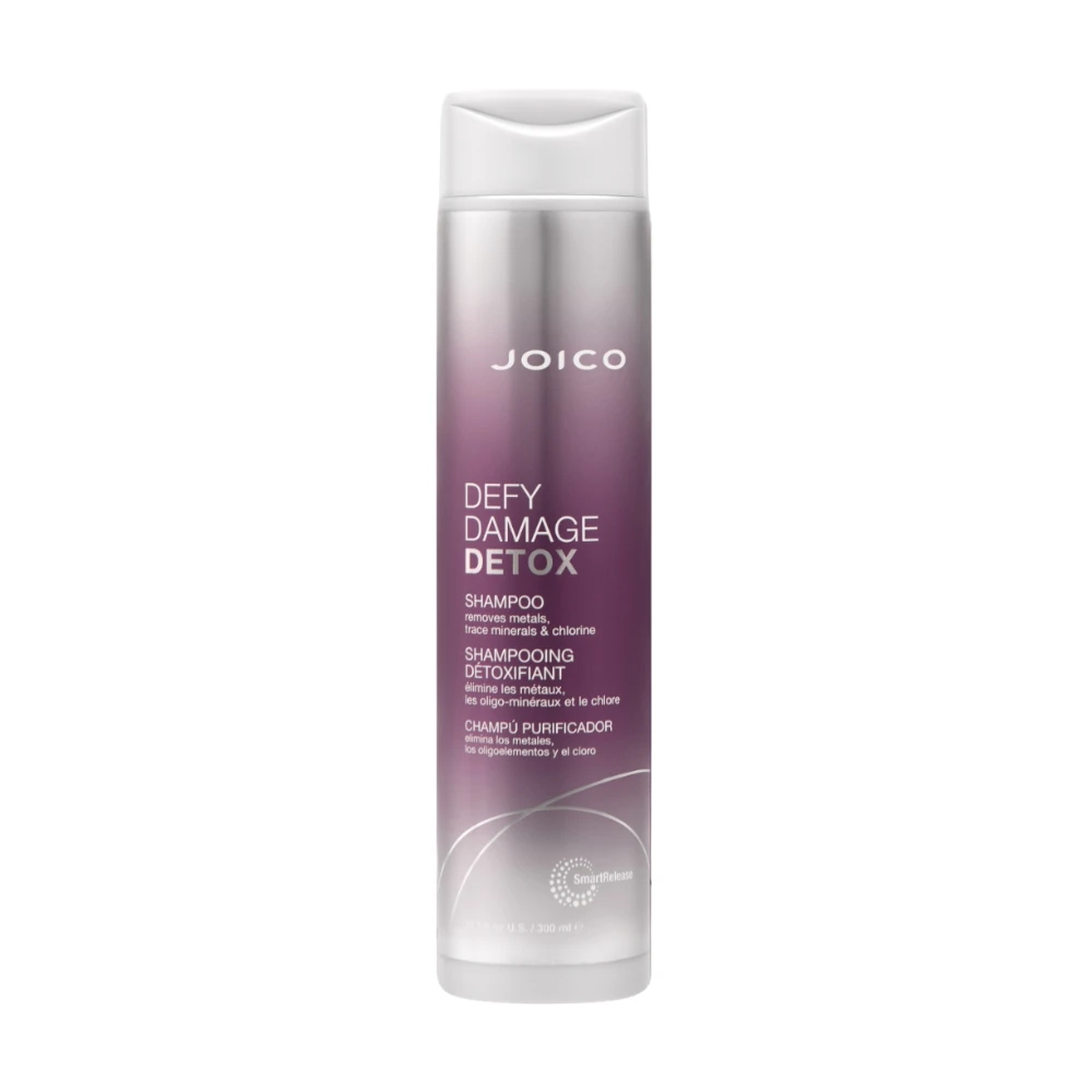 Revitalise your dull, lifeless hair with Joico Defy Damage Detox Shampoo. This powerful cleansing formula effectively eliminates hard water deposits, trace minerals, product buildup, and copper, resulting in clean, soft, and vibrant hair. Enriched with a bio-based chelator and Activated Charcoal, this clarifying shampoo combats green tones from chlorine while reinforcing and strengthening your hair. Its gentle, colour-safe formula ensures your hair remains moisturized and healthy, making it perfect for regular use without stripping away its natural oils.
