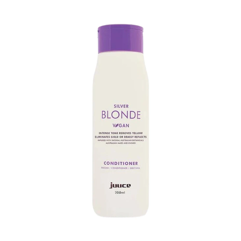 Juuce Silver Blonde Conditioner helps maintain a cool or neutral tone while protecting and moisturising blonde hair.