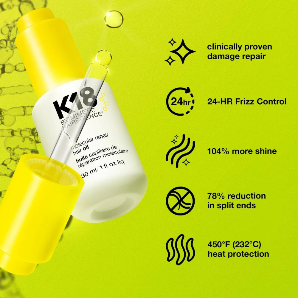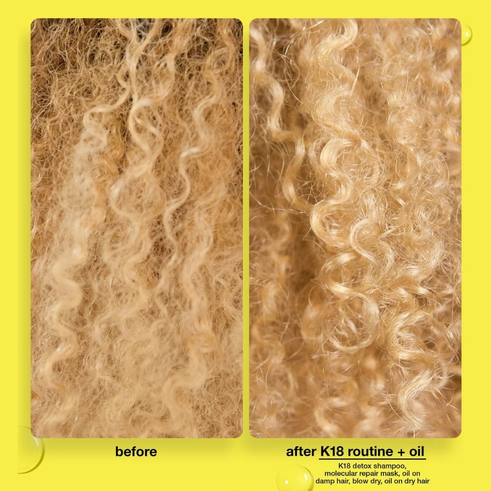 Pro Tip – Use the K18 Molecular Repair Mask first on clean, damp hair, then wait 4 minutes. Apply the molecular repair hair oil, and wait 4 minutes for maximum strengthening results.