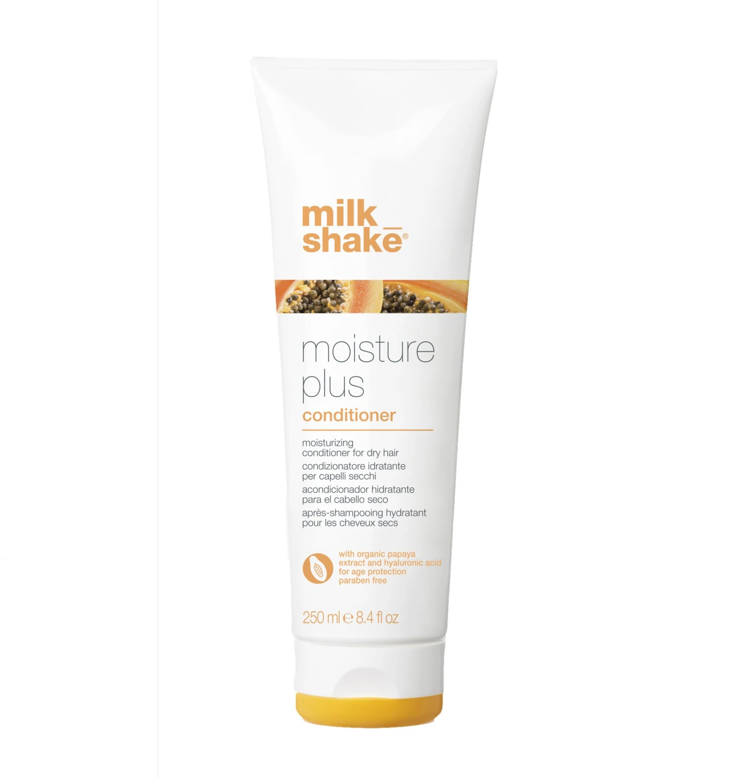 Gives softness and manageability to dry hair, maintaining the hair’s optimal moisture balance. It contains organic papaya extract, Integrity 41 and hyaluronic acid with an anti-ageing action as well as protecting hair colour.