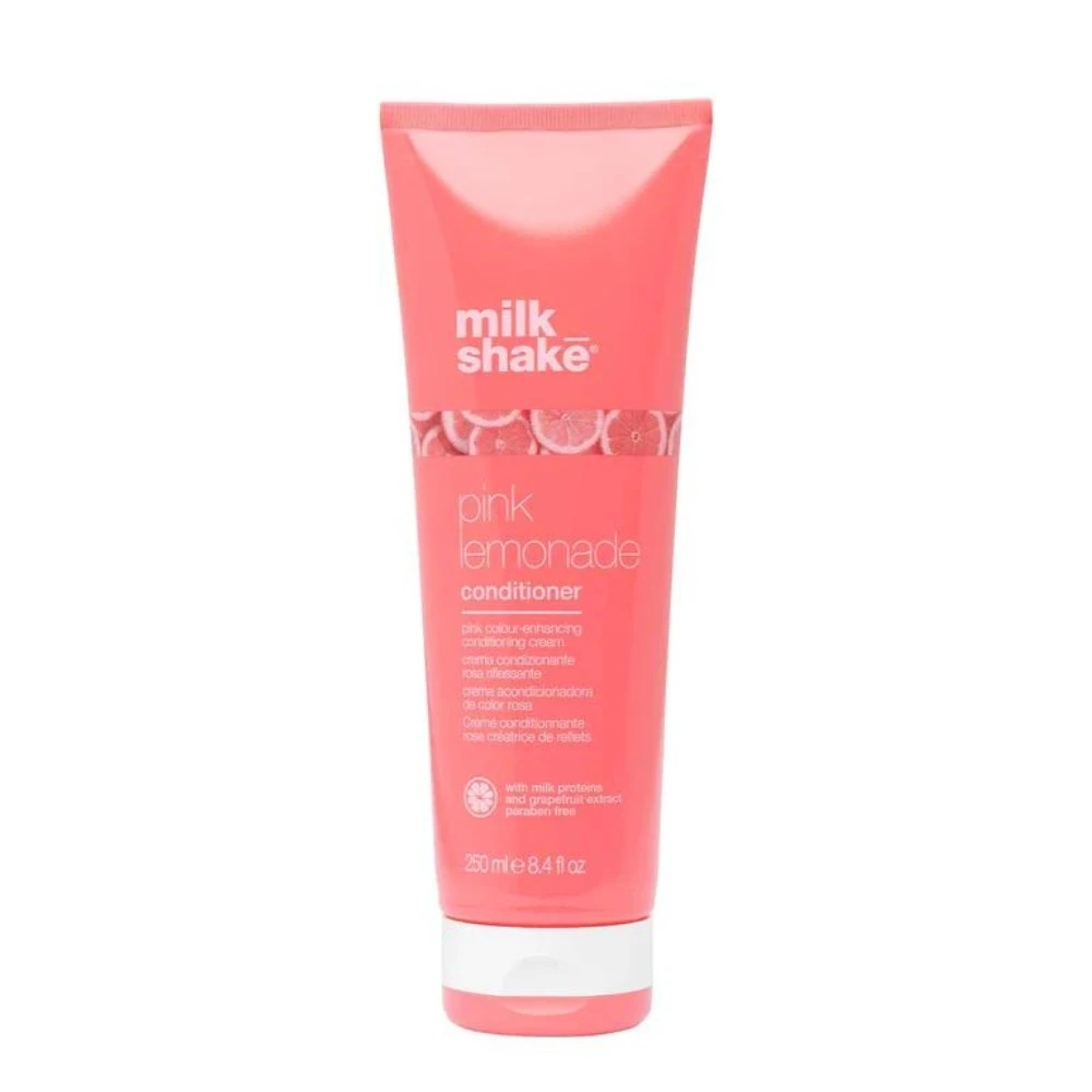 milk_shake pink lemonade conditioner is a conditioning cream for blonde or lightened hair. Formulated with pink pigments, it softens hair while adding pink tones. Color intensity may vary depending on how long it is left on for and how often it is applied.