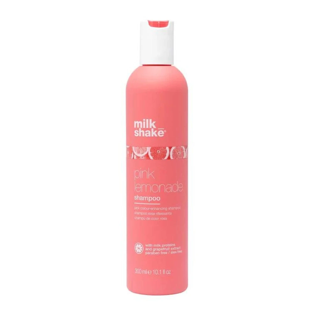milk_shake pink lemonade shampoo is a gentle shampoo for blonde or lightened hair It contains pigments that give hair a touch of pink. The unique pink lemonade formulas contain milk proteins and grapefruit extract, two extraordinary ingredients from nature that have a deep action on the hair, giving a pink color tone without compromising the hair’s beauty and vitality.